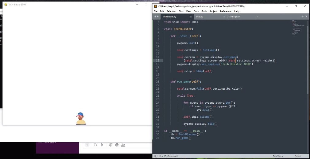 After the imports are added to the code, the actual build of the game can start with a class for the game and an initiator. Within the initiator developers can set the height and width of the window, add a title, and more.